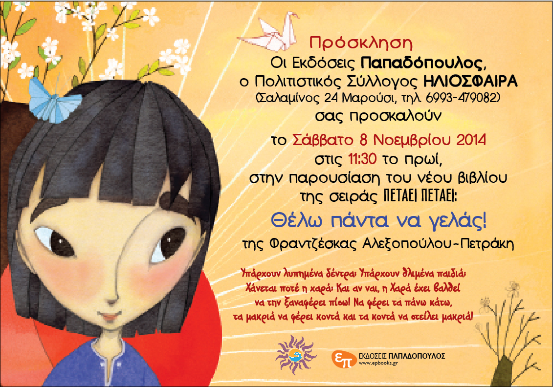 Η παρουσίαση θα γίνει από την συγγραφέα Αλεξοπούλου-Πετράκη Φραντζέσκα.