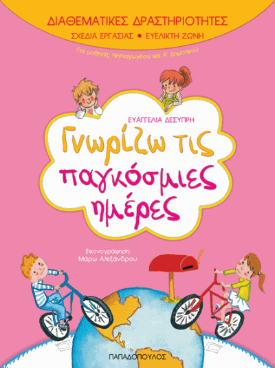 Το «Γνωρίζω τις παγκόσμιες ημέρες» είναι ένα βιβλίο που απευθύνεται στους μαθητές του νηπιαγωγείου και της Α΄ Δημοτικού.